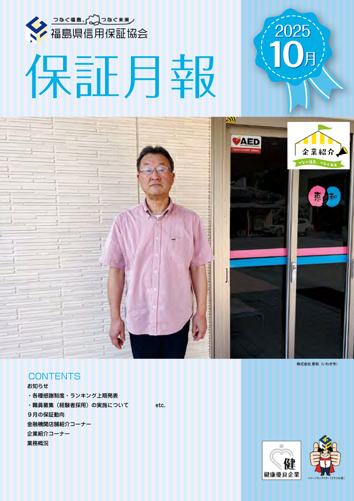 保証月報 2025年10月号 2025年9月号 2025年8月号 2025年7月号 2025年6月号 2025年5月号 2025年4月号 2025年3月号 2025年2月号 2025年1月号 2024年12月号 2024年11月号 1234〉 信用保証協会について 福島県信用保証協会とは 信用補完制度について 組織図、役員構成、所轄区域 窓口のご案内 情報公開 / 広報・刊行物 ご利用案内 ご利用メリット ご利用いただける方 ご利用方法・手続きの流れ 保証内容 必要書類 団体信用生命保険について 信用保証料について 創業支援 創業保証制度を利用できる方 創業までの道筋 イベント・相談会・セミナーのご案内 創業者紹介コーナー「夢、ふくふく」 女性支援チーム 雪うさぎ 経営支援 Mcss 専門家派遣事業 経営改善計画策定支援事業 経営サポート会議 オールふくしま経営支援事業 事業承継サポート 特別相談窓口のご案内 イベント・相談会・セミナーのご案内 窓口のご案内 目的から制度を探す 目的別保証制度 おすすめ制度 保証制度一覧 新着情報 イベント・相談会・セミナー よくあるご質問 お問い合わせ窓口 採用情報 さすけね君相談室! 信用保証料シミュレーション 金融機関専用ログイン